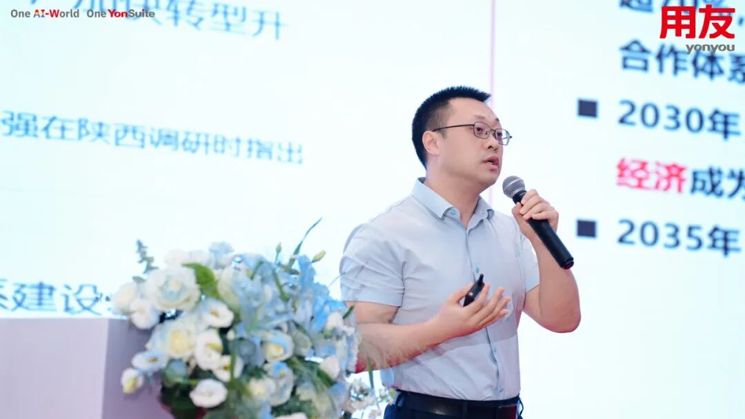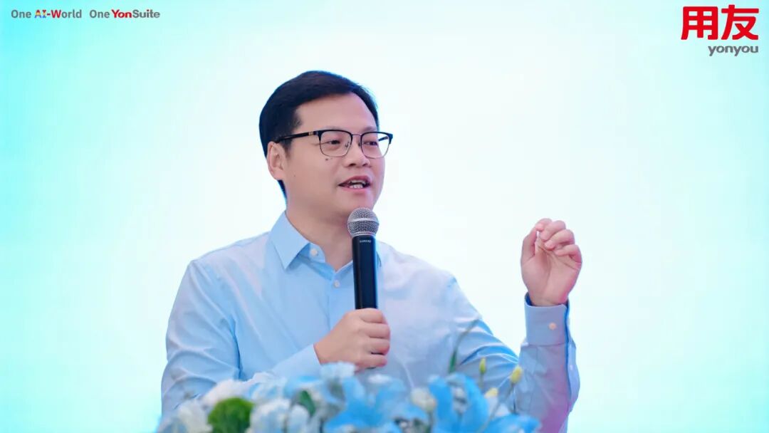 用友网络副总裁、四川分公司总经理邵正善先生为本次活动致辞,邵总提到人工智能正从概念走向实实在在的生产力,成为推动企业增长的新引擎。他指出,YonSuite以AI原生和一体化能力为核心,致力于为企业提供“开箱即用”的智能解决方案,帮助成长型企业系统性重塑竞争力,实现AI时代的管理新范式。人工智能浪潮袭来,企业可以积极拥抱AI,以行动代替观望,共同迈向智能商业新未来。 One AI-World One YonSuite YonSuite 让AI在创新企业落地 会上,用友网络高级副总裁兼企业BG总裁 徐洋先生发表了《One AI-World One YonSuite——YonSuite重塑企业数智化生产力》的主题演讲。他指出,当前AI已从聊天机器演进至能思考并行动的智能体阶段(L3),大规模语言模型与算力、能源等基础能力的成熟,推动 AI 向多领域渗透。企业数智化转型已成共识,中国企业凭借政策红利、技术突破、成本优势及管理经验,迎来全球经营窗口,但也面临投资回报率低、数据安全风险、AI 与业务脱节等落地难题。 他指出:“One AI-World, One YonSuite”不仅是一句口号,更是用友 YonSuite 在新时代对自身新身份、新能力、新使命的精准定义。YonSuite 已从一个 SaaS 套件,进化为AI大模型驱动的PaaS+SaaS一体化商业创新平台(BIP),助力企业重塑数智化生产力。