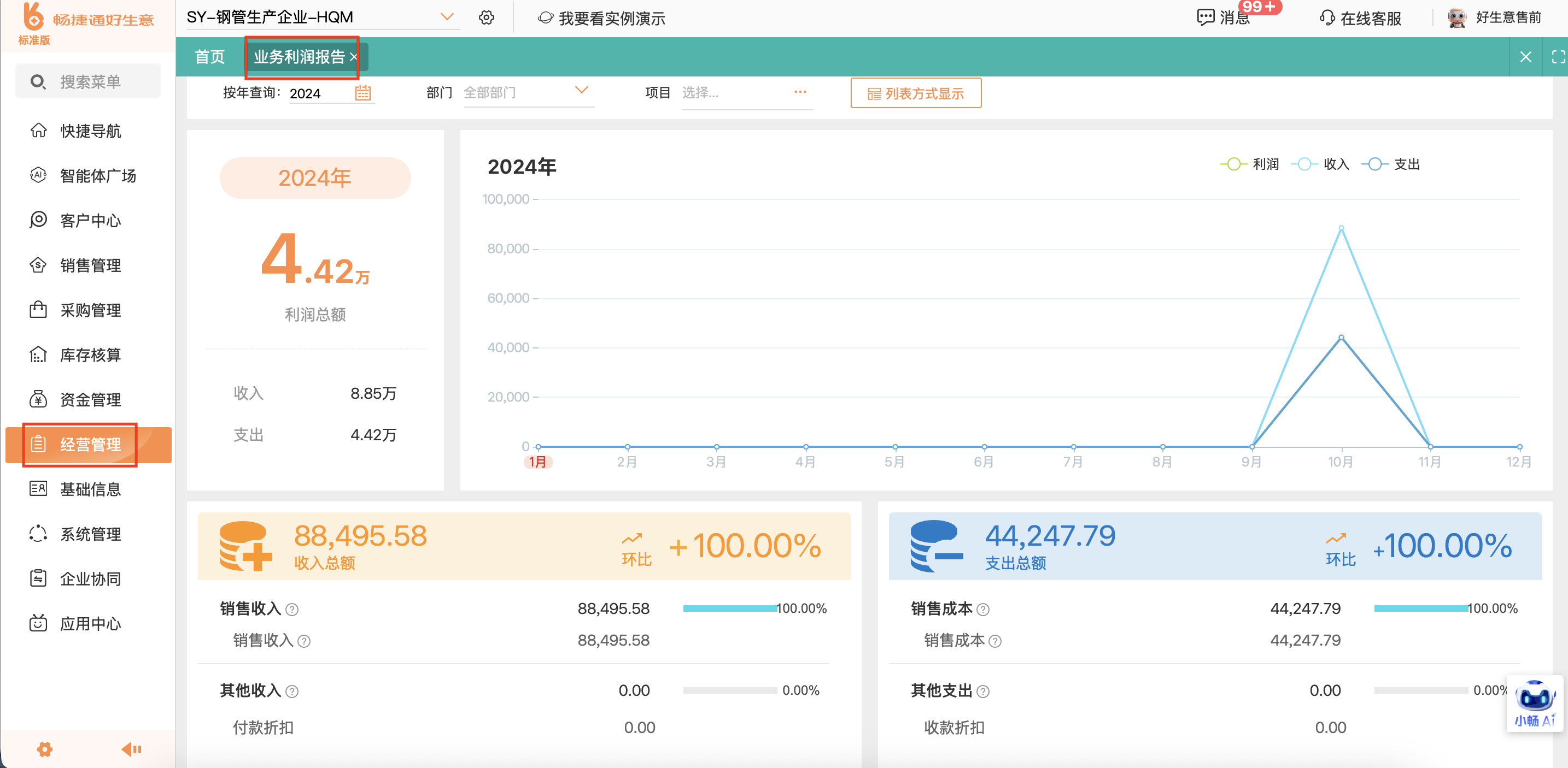 1、实时掌握项目利润,驱动精准决策通过好生意【业务利润报告】,可随时查看任意项目的实时收入、成本及毛利数据。当发现某类项目利润率低于预期时,能够迅速调整报价或优化成本,实现高效精准决策。