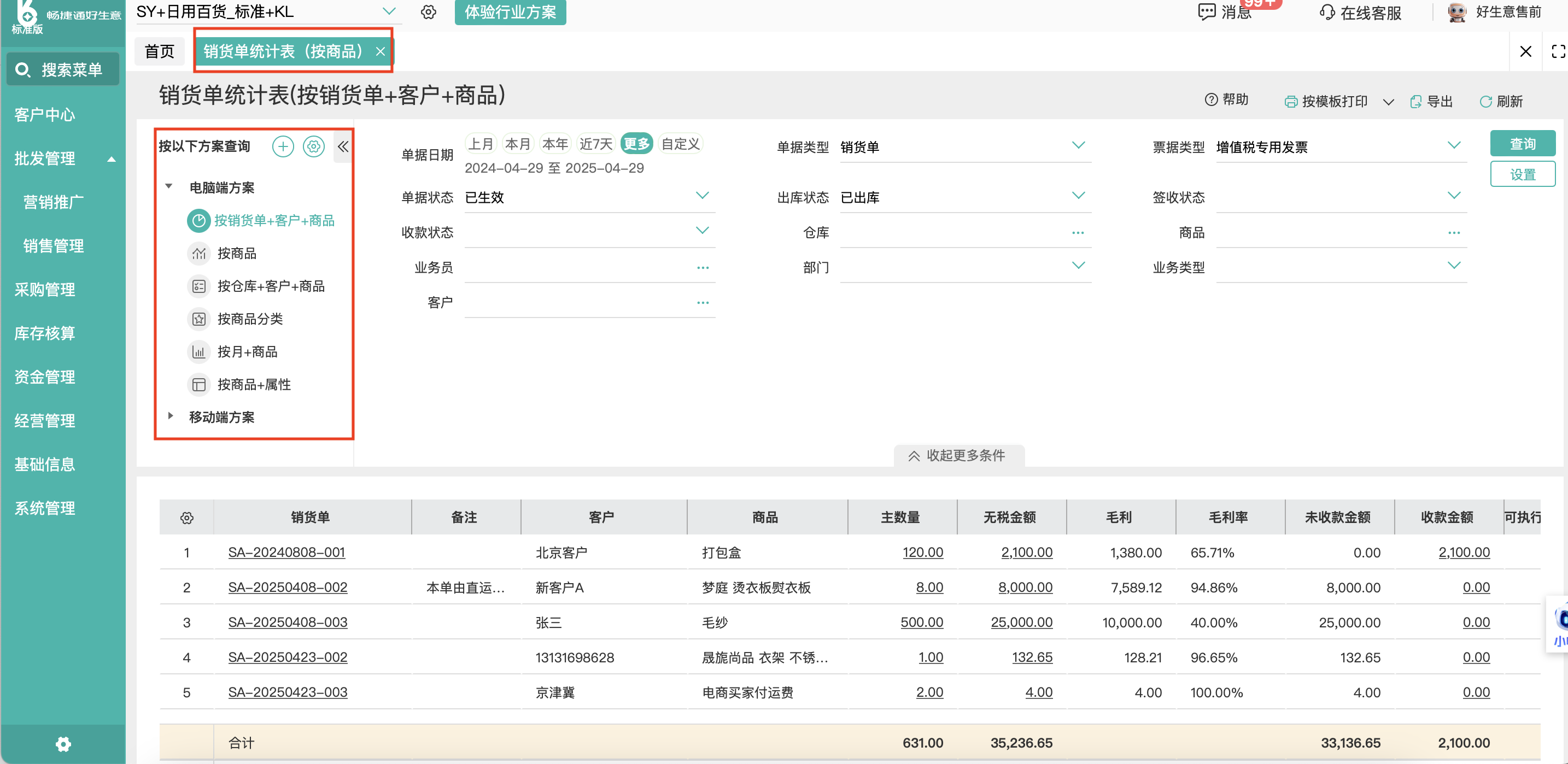 通过好生意的 【项目核算】 功能,在创建采购订单、销售订单、费用单等所有单据时,均可关联具体项目。老板想看任何项目的盈亏,只需进入 【业务利润报告】 ,选择对应项目,系统即可自动归集该项目下的所有收入、成本、费用,实时生成项目利润表,让项目盈利情况一目了然。