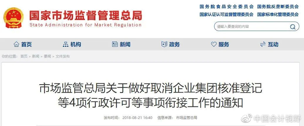 注册新规!取消企业集团核准登记